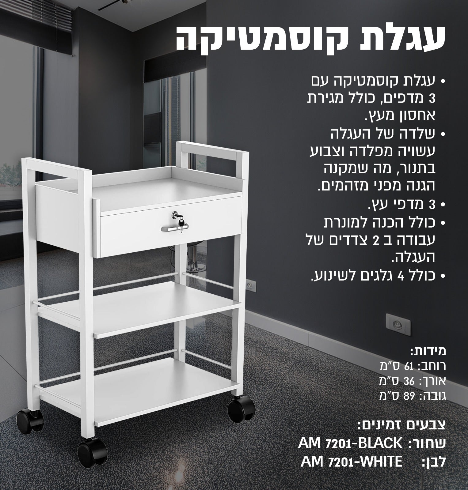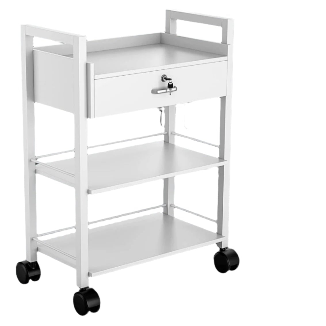 • עגלת קוסמטיקה עם 3 מדפים, כולל מגירת אחסון מעץ.