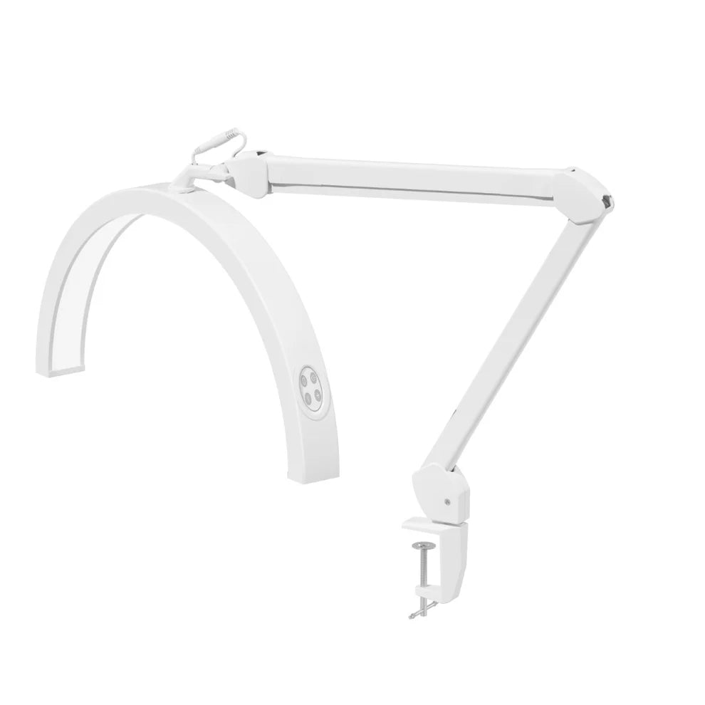 מנורת LED בעיצוב קשת יוקרתי עם תאורה אחידה וללא צללים לצילום ולעבודה מדויקת. ראש מתכוונן ודימר מובנה לשליטה קלה בעוצמת האור ובטמפרטורת הצבע (3000/4000/6500K). תופסן (קלאמפ) שולחני קומפקטי חוסך מקום, וזרוע יציבה במיוחד מאפשרת כוונון גובה/סיבוב/הטיה בדיוק מלא. אידיאלית לקליניקות, מכוני יופי וסטודיו צילום.