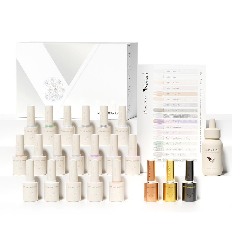 לק ג'ל אטום הפורמולה החדשנית ללא HEMA, TPO, ו-HPMA - ונליסה Venalisa מארז יוקרתי של 18 לקים בגוונים טהורים - SNOW LOTUS