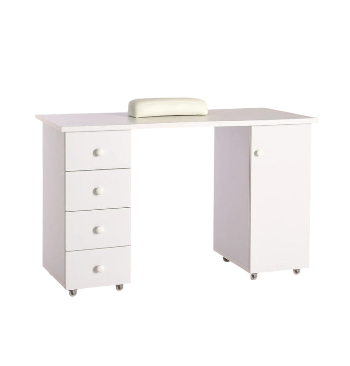 שולחן עם משטח עץ רחב, עמיד בפני שריטות. • כולל 2 מגירות לאחסון כלי עבודה וחומרים. • ארונית תחתונה עם דלת לאחסון נוסף.
