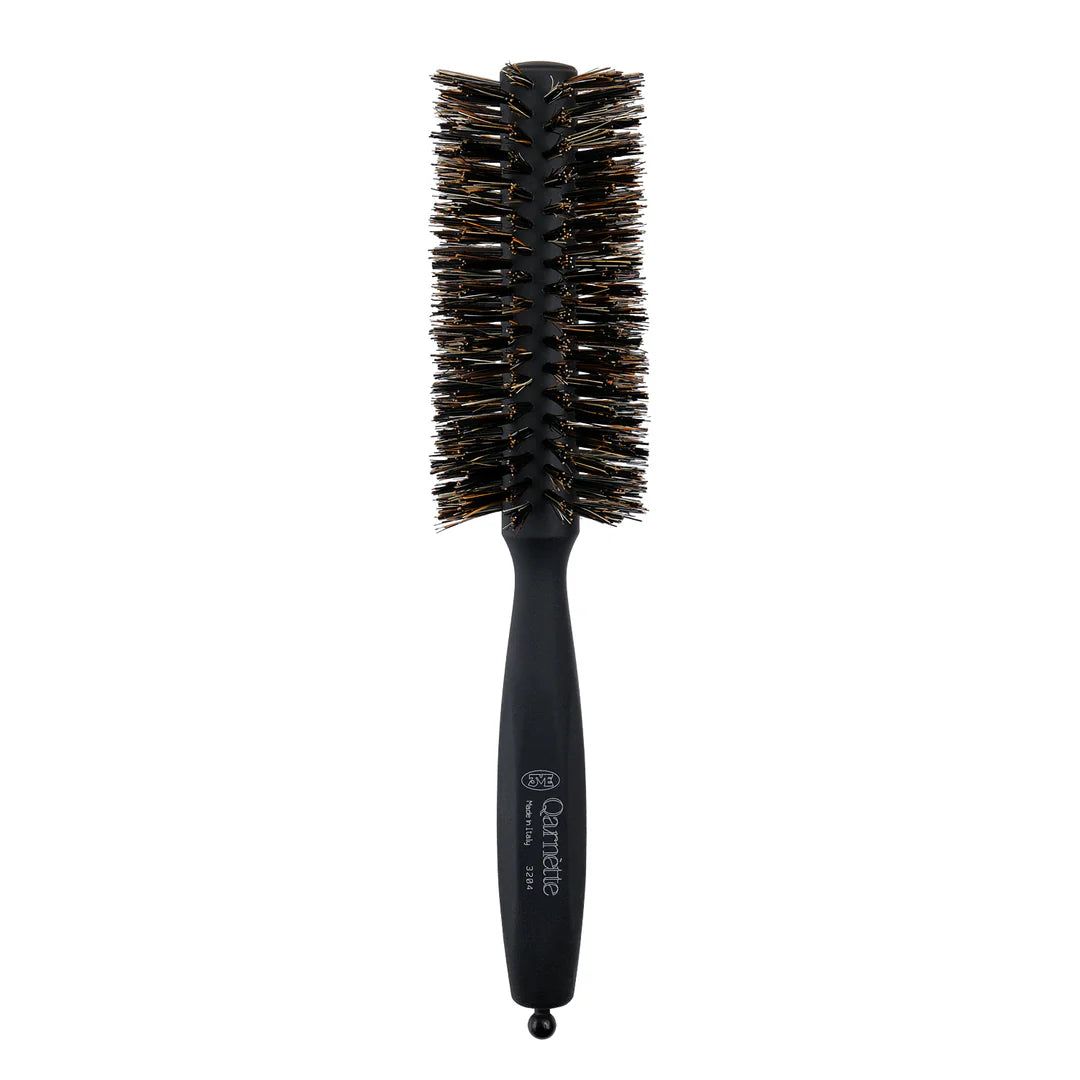 Ручка изготовлена из натурального дерева и обеспечивает удобный захват. Щётка оснащена разделяющим шипом, который позволяет точно разделять волосы. Щётка обеспечивает быструю и эффективную укладку, а также отличается высокой прочностью — ручка не ломается и не плавится от нагревания внутренних бигуди.